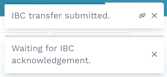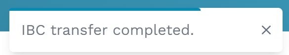 And when the IBC transfer is complete, you'll see an indicator with a message that the IBC transfer was completed successfully.