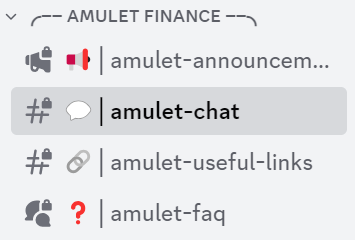 <figure><img src="https://3544927487-files.gitbook.io/~/files/v0/b/gitbook-x-prod.appspot.com/o/spaces%2FqHZFbXk2wKTjEKQtKpLF%2Fuploads%2FPLaT5H4b6kZDPIUz72vU%2Famulet-finance-chat-discord.png?alt=media&#x26;token=87e6614a-8e23-479d-b5ea-7f698483d94d" alt=""><figcaption></figcaption></figure>