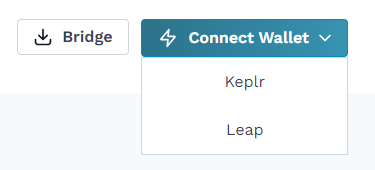 Click "**Connect Wallet**," and then "**Keplr**" or "**Leap**."
