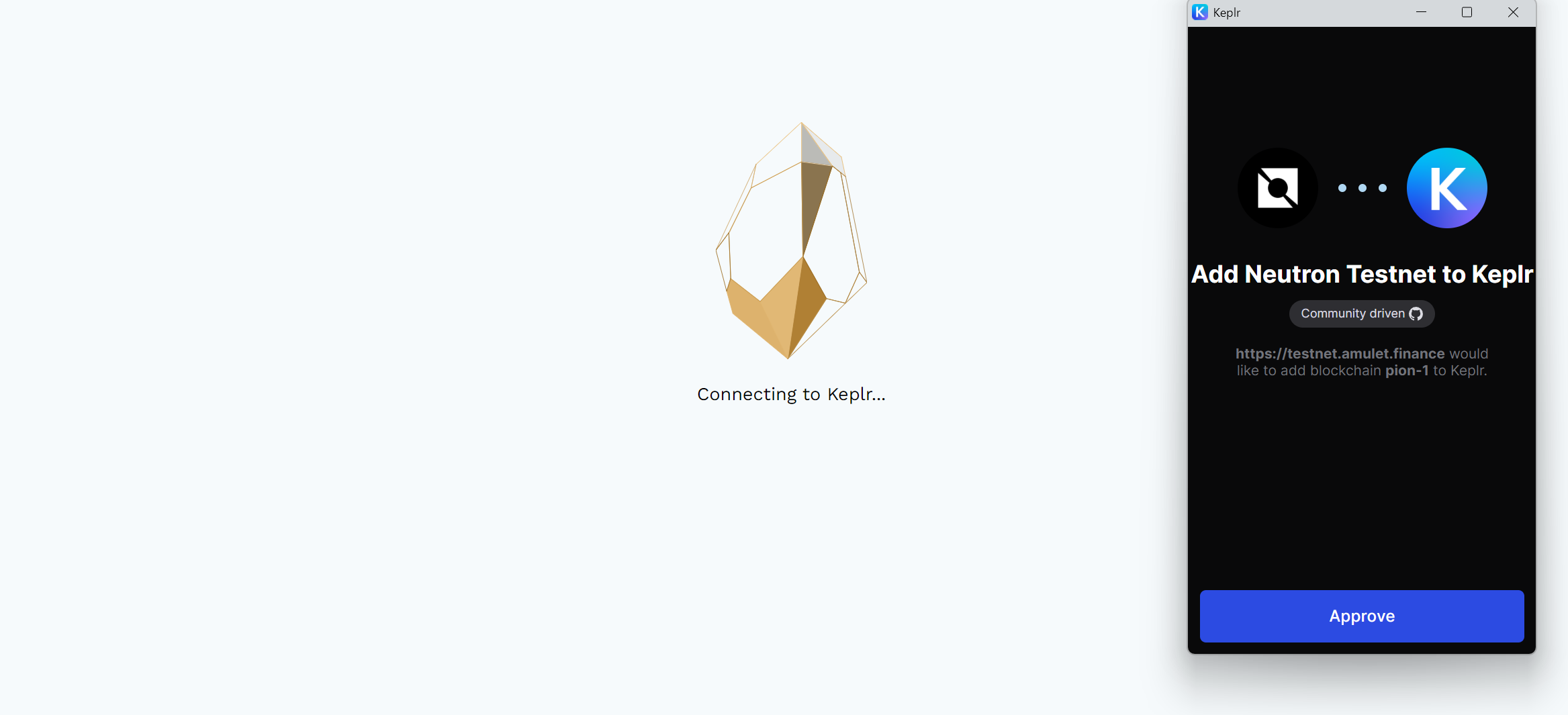 If you haven't connected to the **Neutron testnet** before, you may see this prompt to add the chain to your wallet.